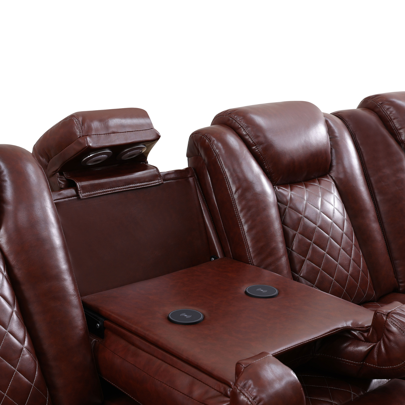 Pickup Only-Red Breathing Leather 3-Piece Living Room Recliner Sofa Set